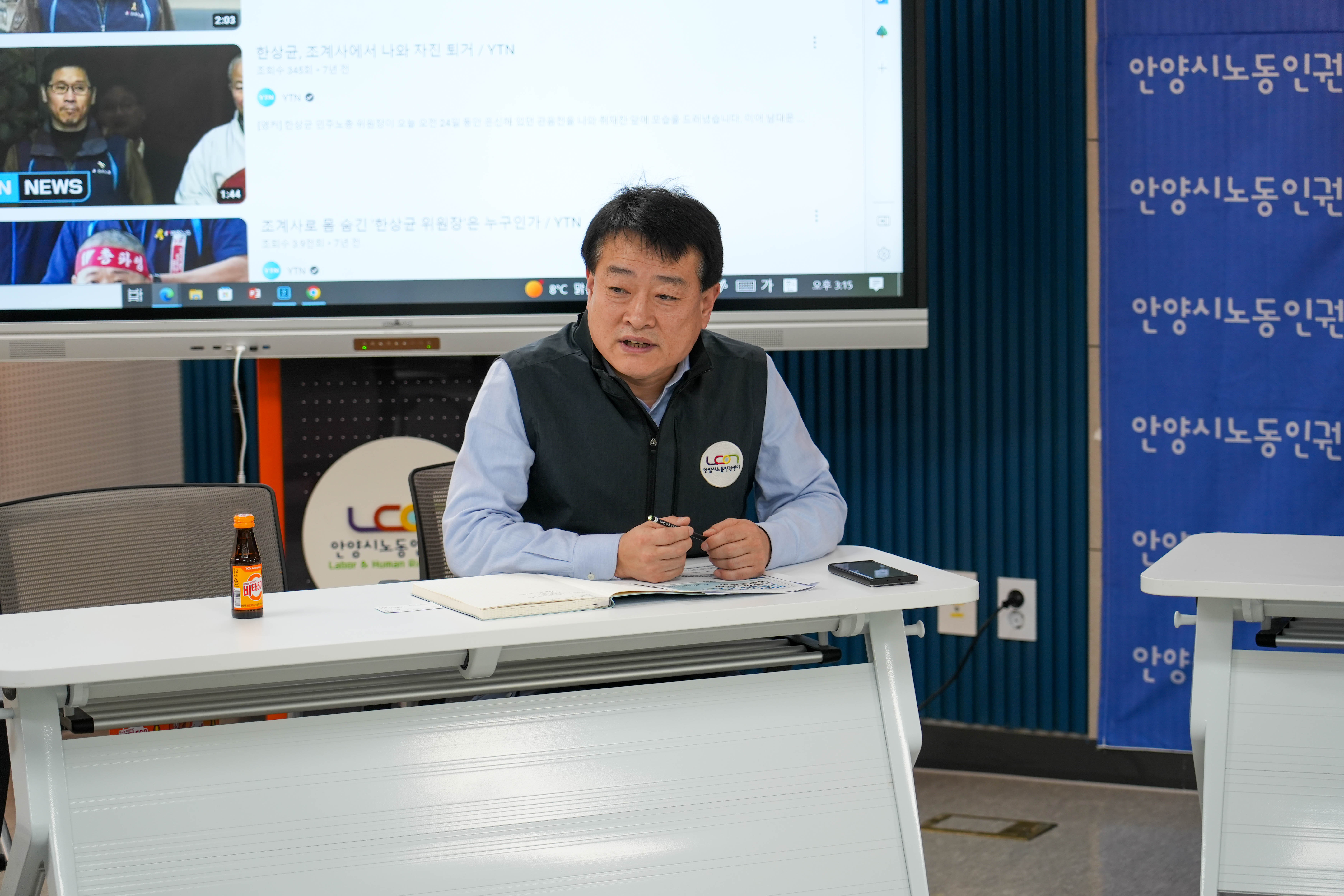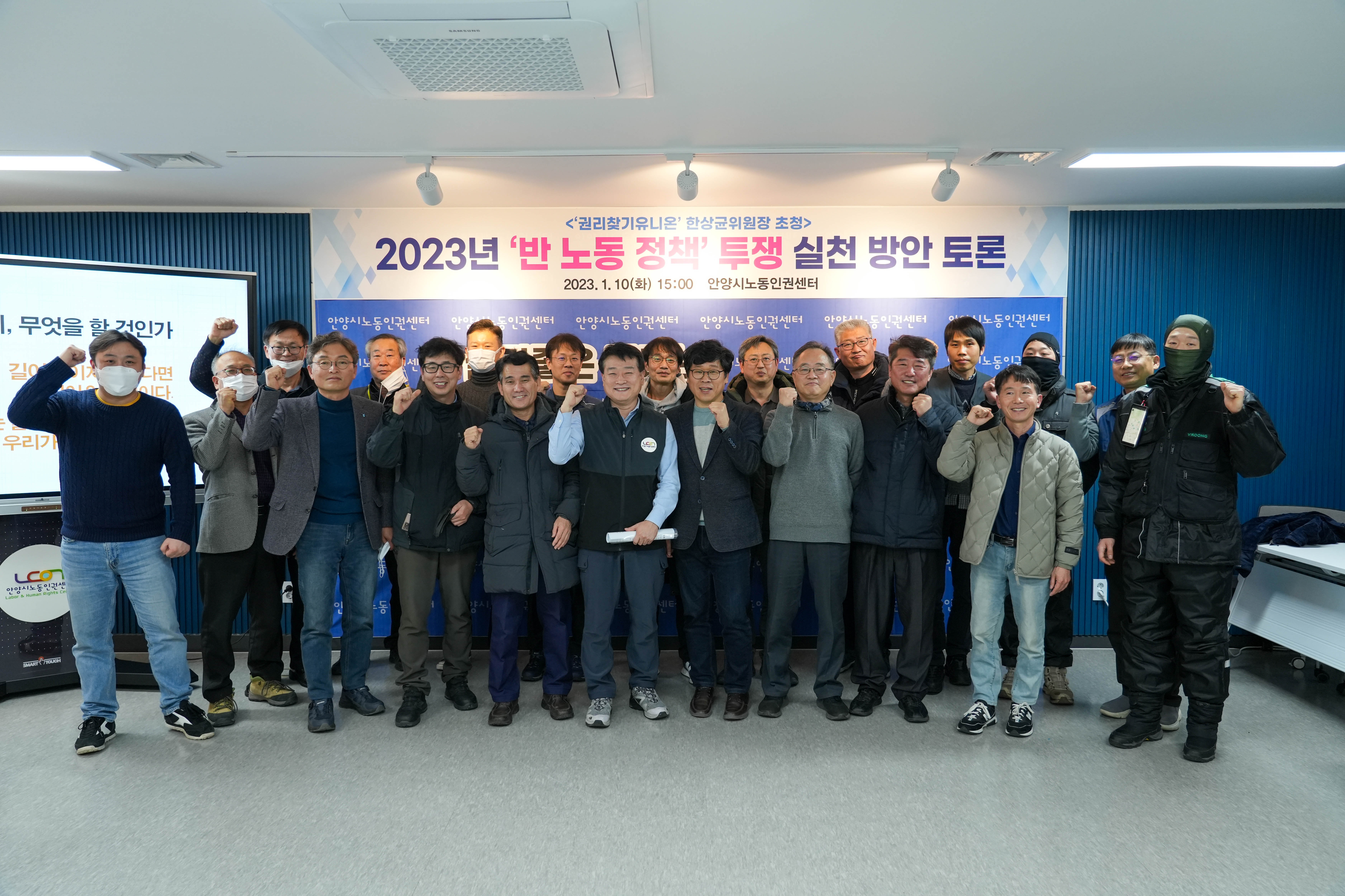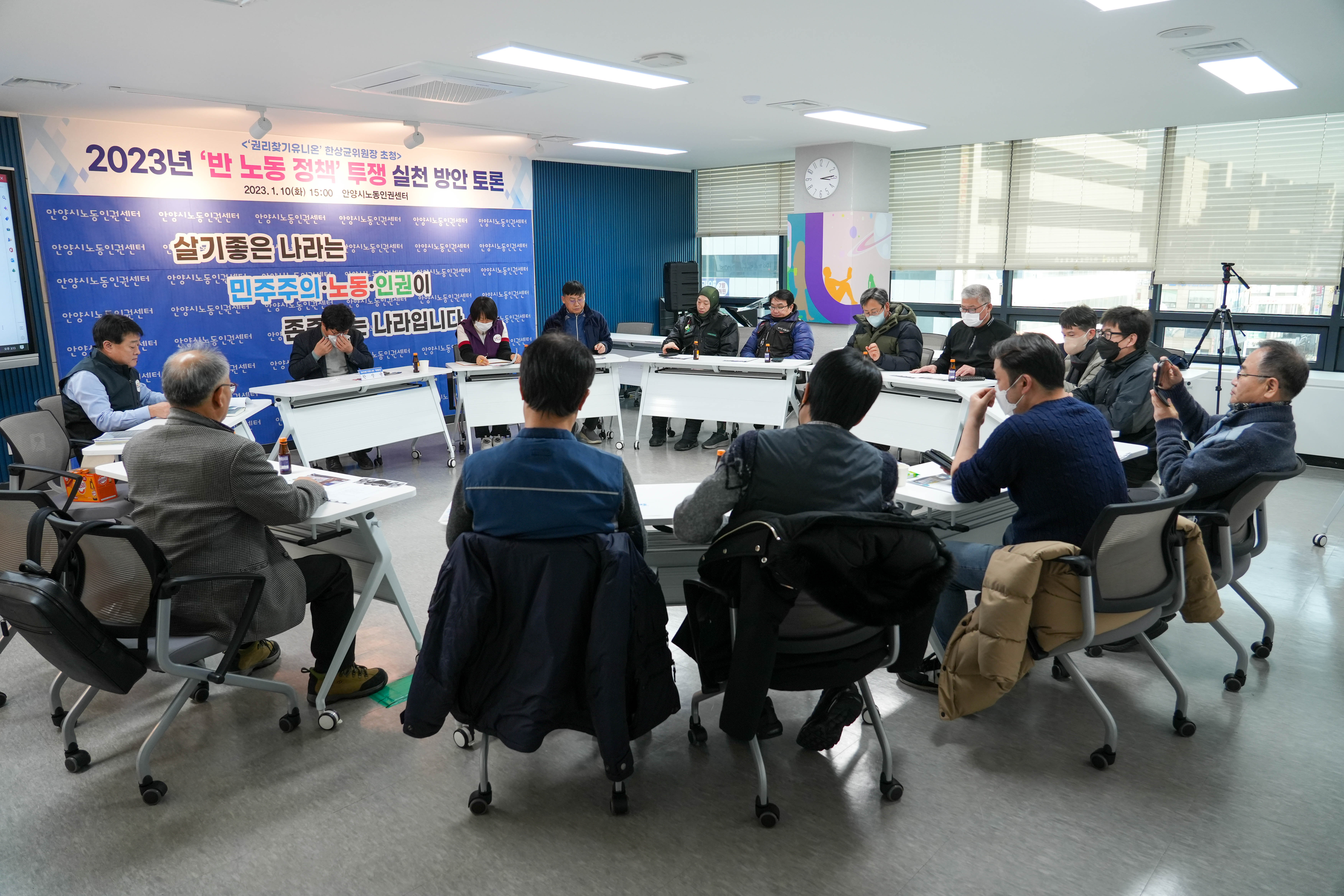 일하는 안양시민의 든든한 동반자 안양시노동인권센터에서⠀ ⠀ 금일 1월 10일(화) 오후 3시,⠀ 2023년을 맞이하여⠀ 토론을 진행했습니다 ⠀ 이번 토론에는 특별 초청한⠀ 「권리찾기유니온」 한상균 위원장의⠀ '2023년 노동정세 및 투쟁 전개 방향' 이라는⠀ 사전 발제를 시작으로⠀ ⠀ 각계각층의 노동자와 관계자이 함께⠀ 다양한 방안에 대해 논의했습니다 ⠀ ⠀ 2023년 계묘년 새해를 맞이하여⠀ 안양시민과 더불어 모든 노동자가⠀ 더 나은 노동환경에서 일할 수 있도록⠀ 더욱 노력하겠습니다