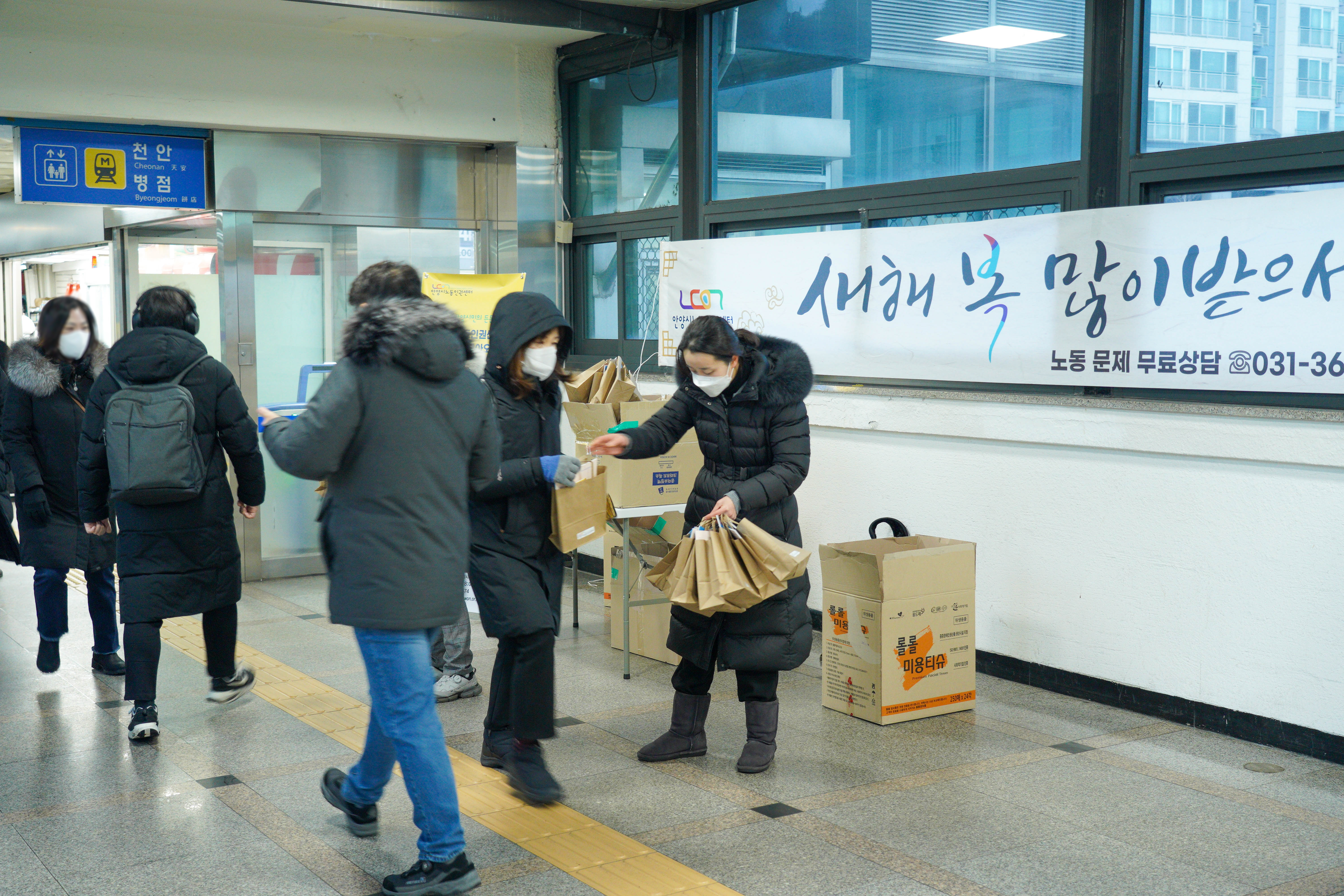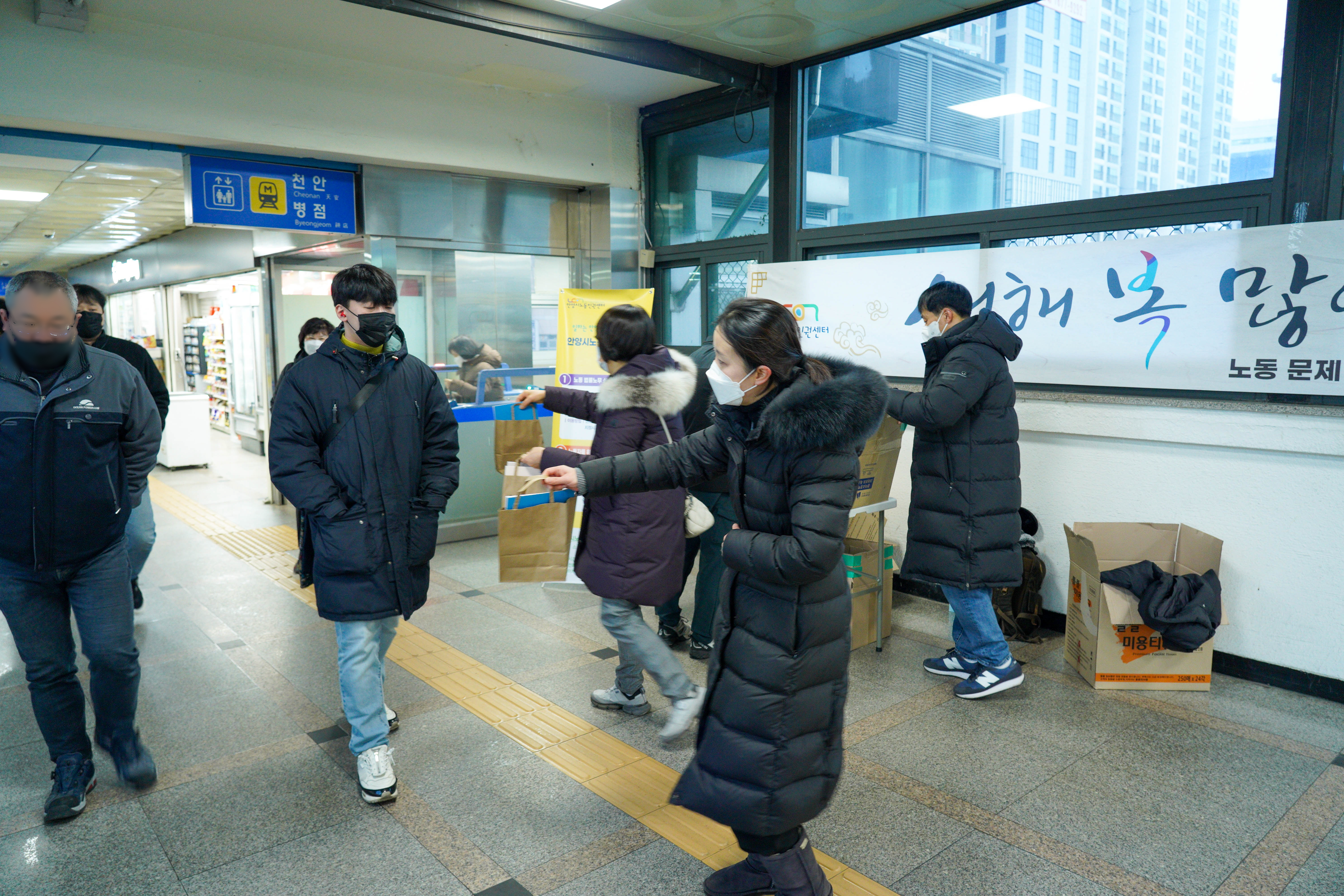 일하는 안양시민의 든든한 동반자 안양시노동인권센터에서⠀ ⠀ 오늘 1월 18일(수) 오전 7시 30분,⠀ 관내 전철역 중의 하나인 명학역에서⠀ ⠀ 이른 시간에 출근하는 안양시민과⠀ 안양시로 출근하는 근로자에게⠀ 응원의 새해인사를 드리며⠀ 찾아가는 노동인권센터를 알려드렸습니다 ⠀ 출근하는 많은 시민께서⠀ 바쁘신 와중에도 인사를 받아주시며⠀ 노동인권센터에 많은 관심을 주셨던⠀ 뜻깊고 따뜻한 시간이었습니다