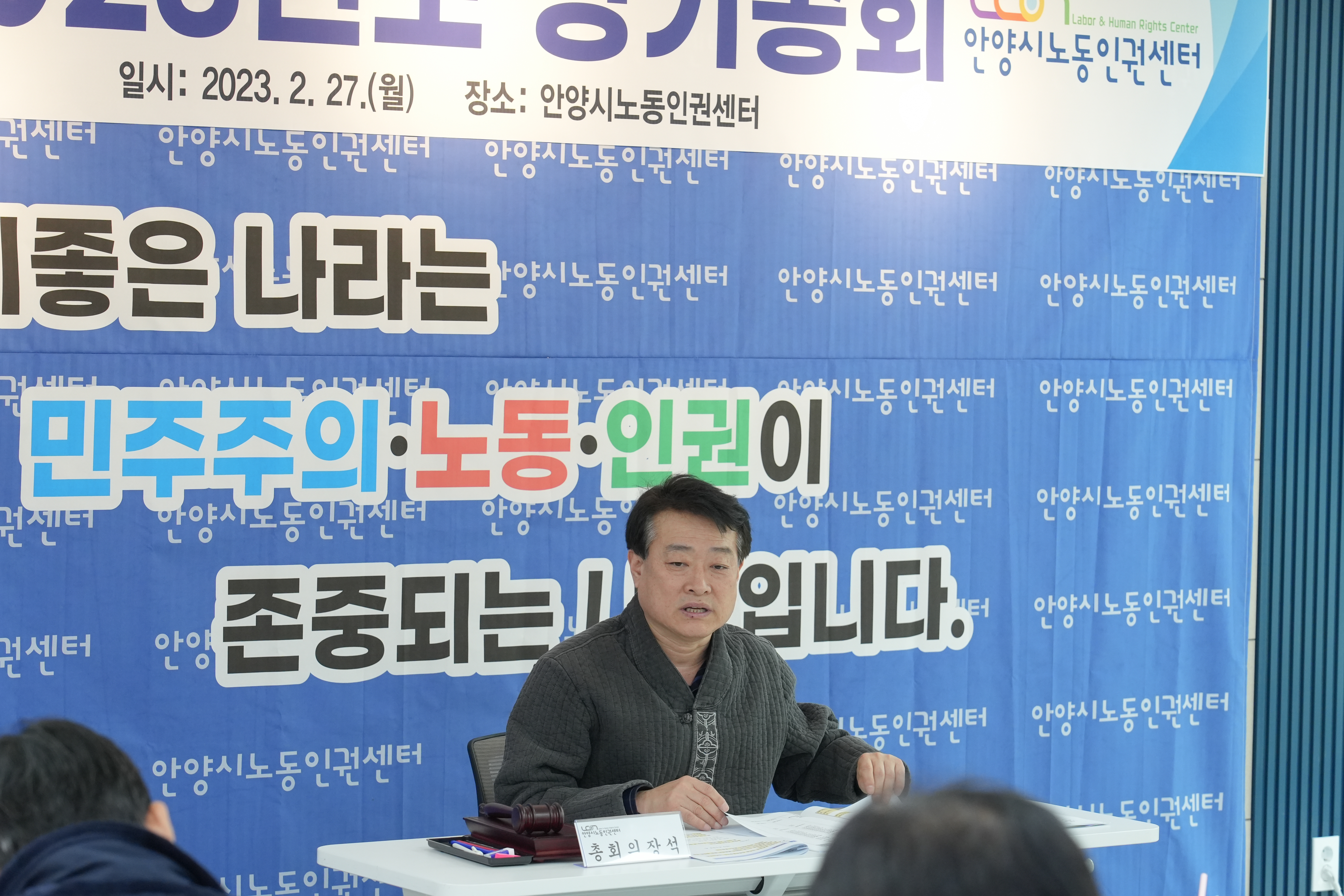 안양시노동인권센터 2023년도 정기총회 - 일시 : 2023. 02. 27. 13:00 - 장소 : 안양시노동인권센터 교육장