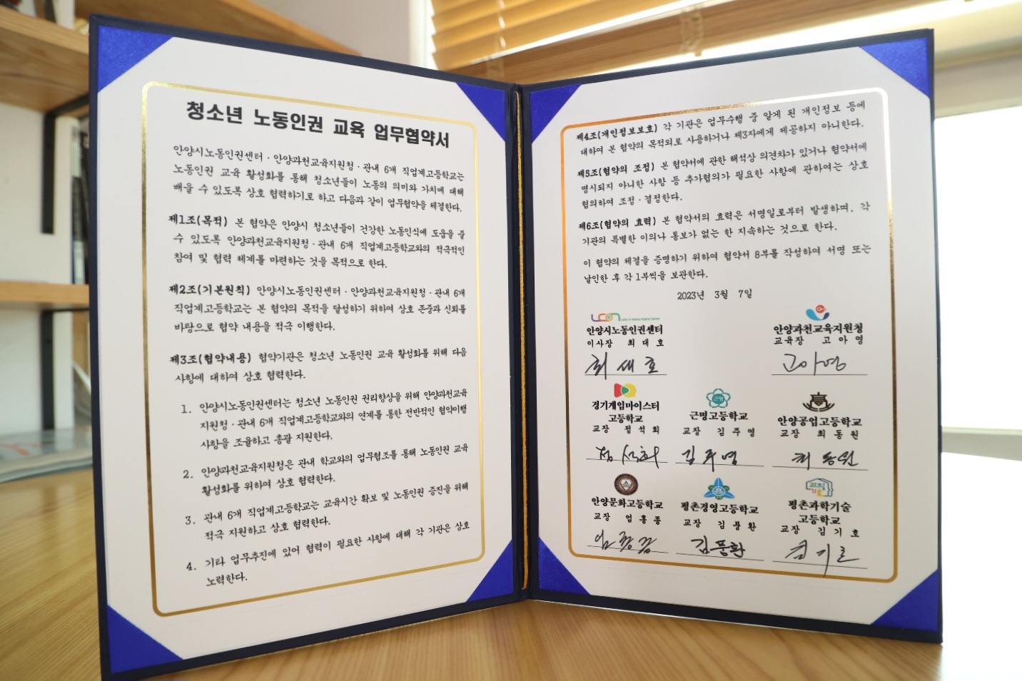 찾아가는 청소년 노동인권 교육 업무협약식 - 일시 : 2023. 03 07. 11:00 - 장소 : 시청 접견실