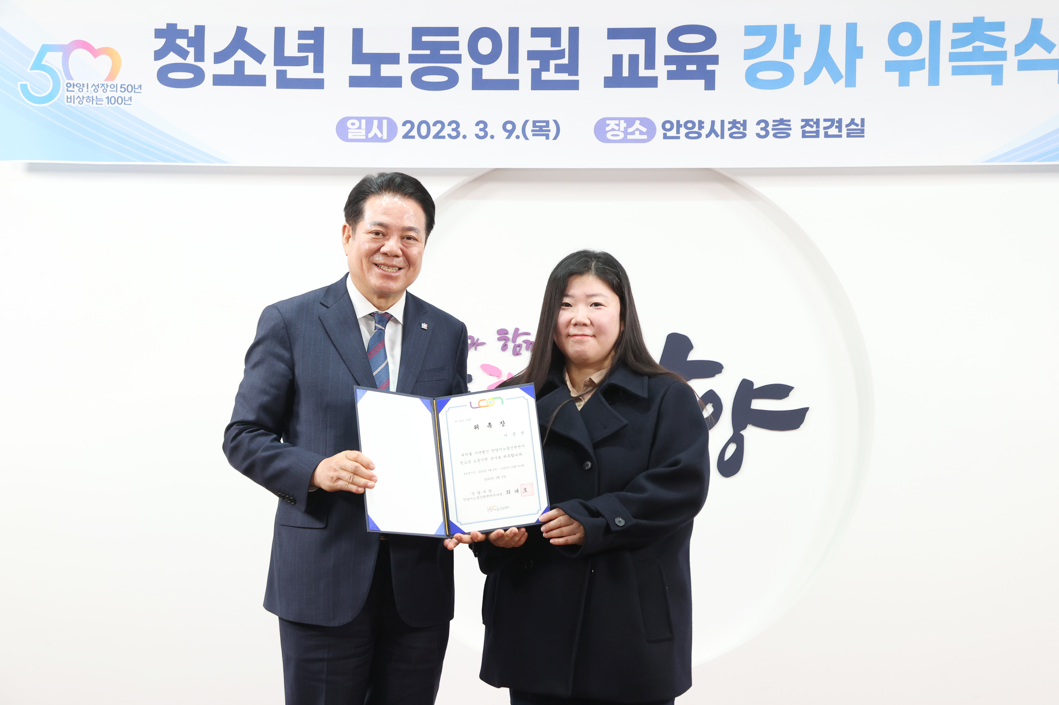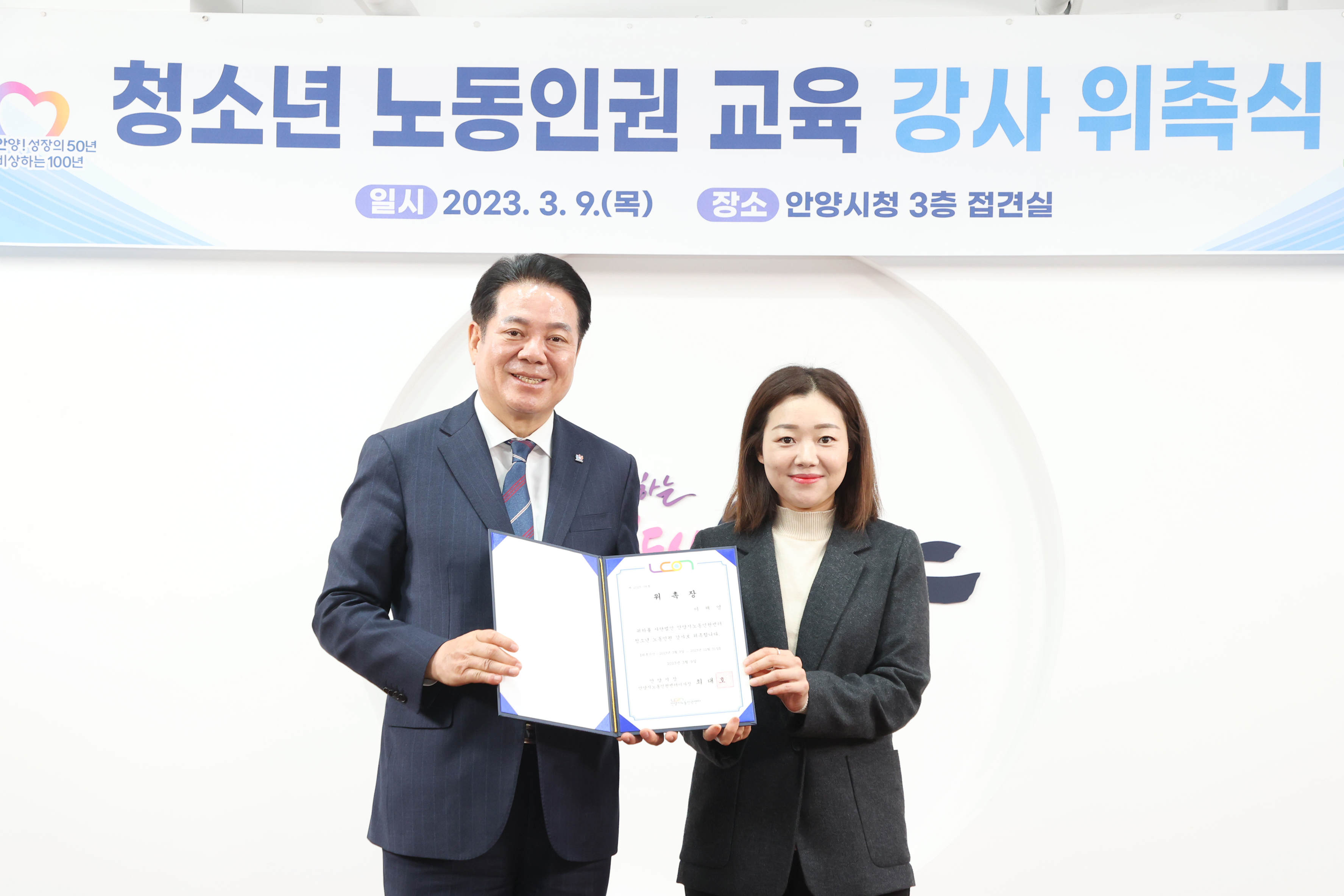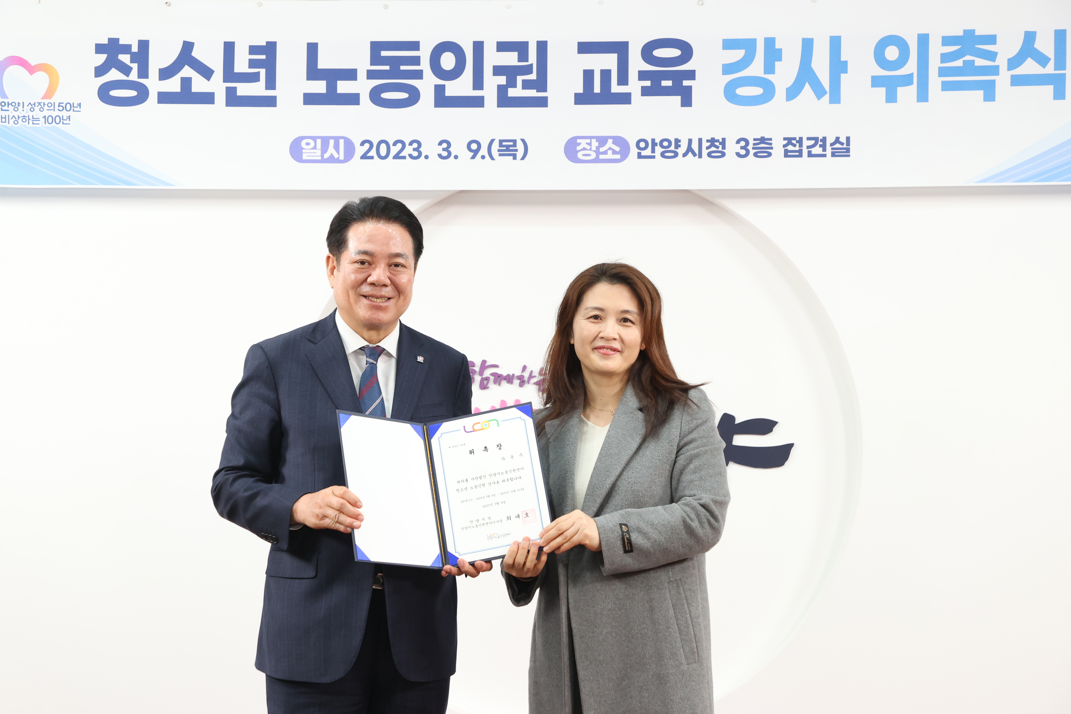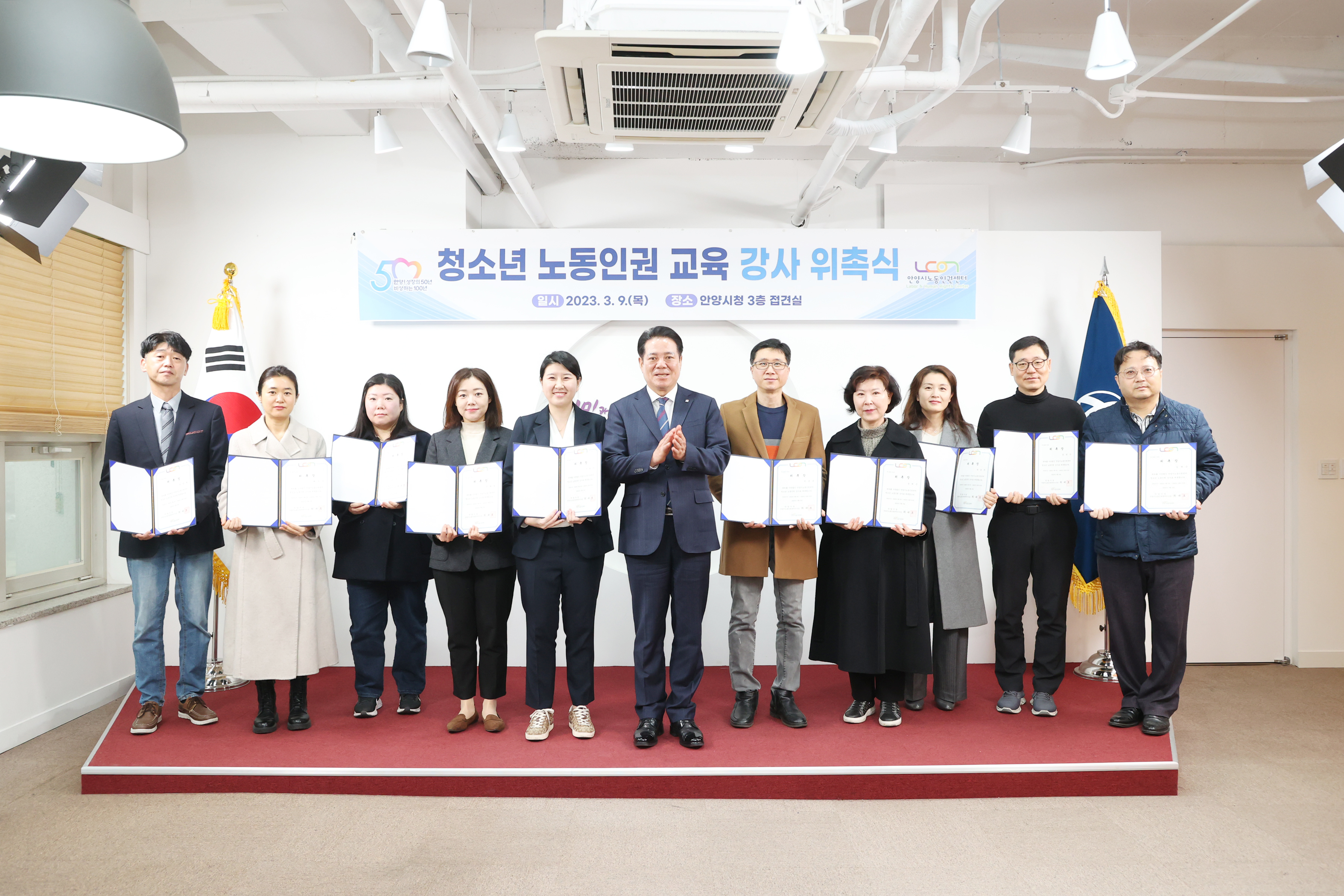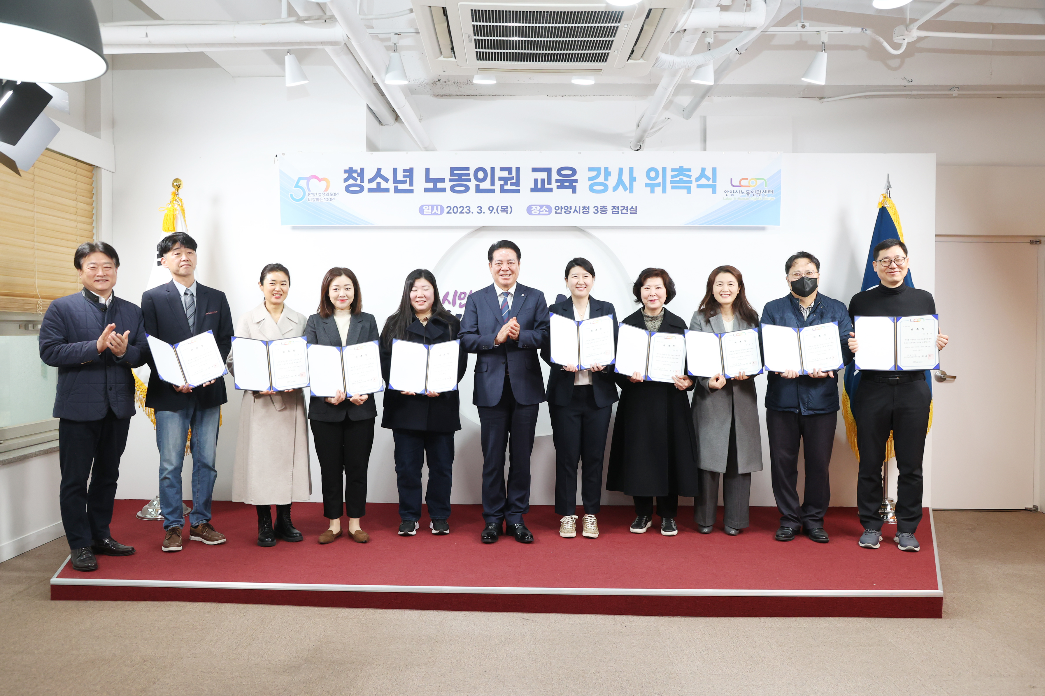 청소년 노동인권 교육 강사 위촉식 - 일시 : 2023. 03 09. 10:00 - 장소 : 시청 접견실