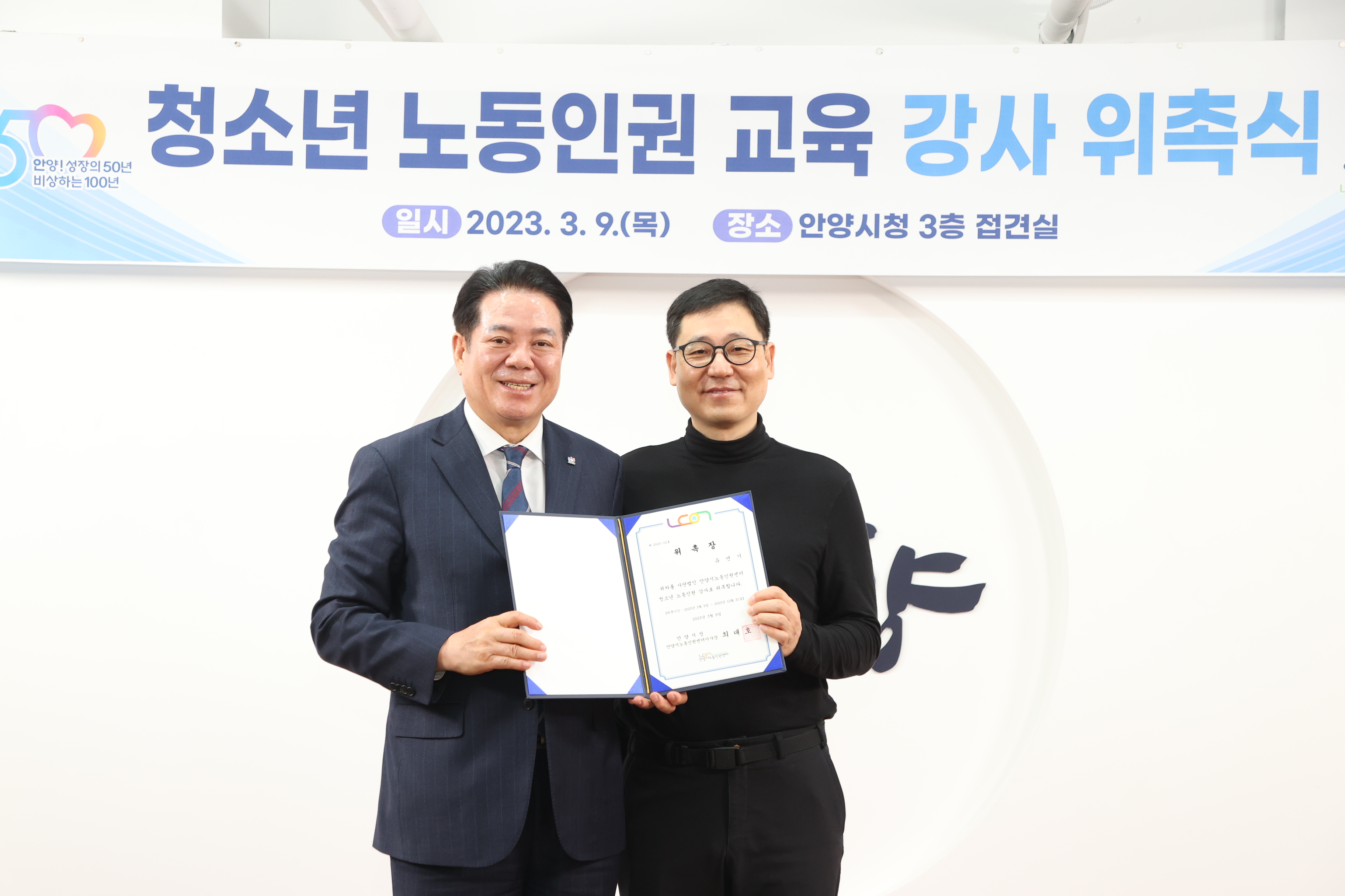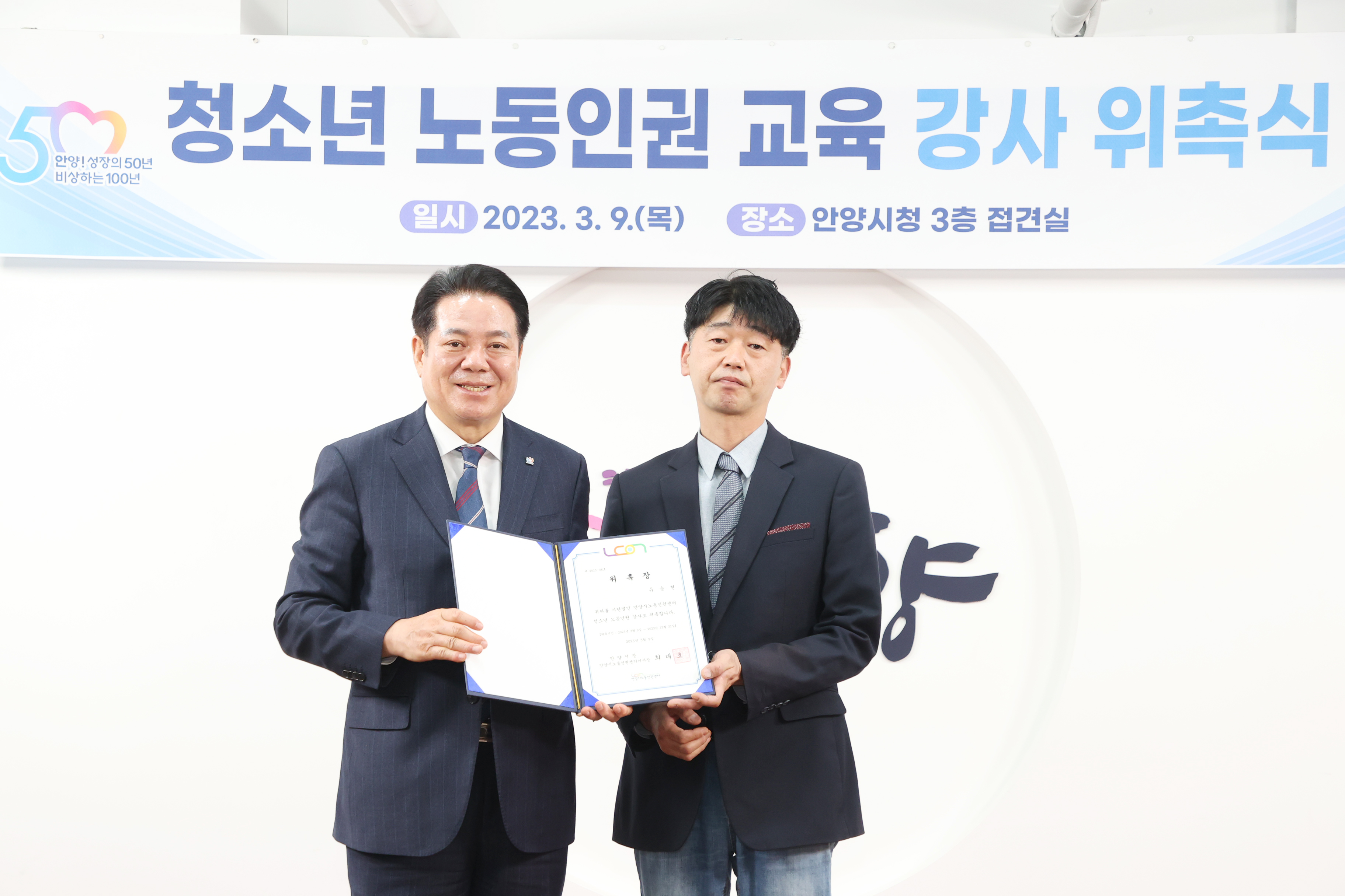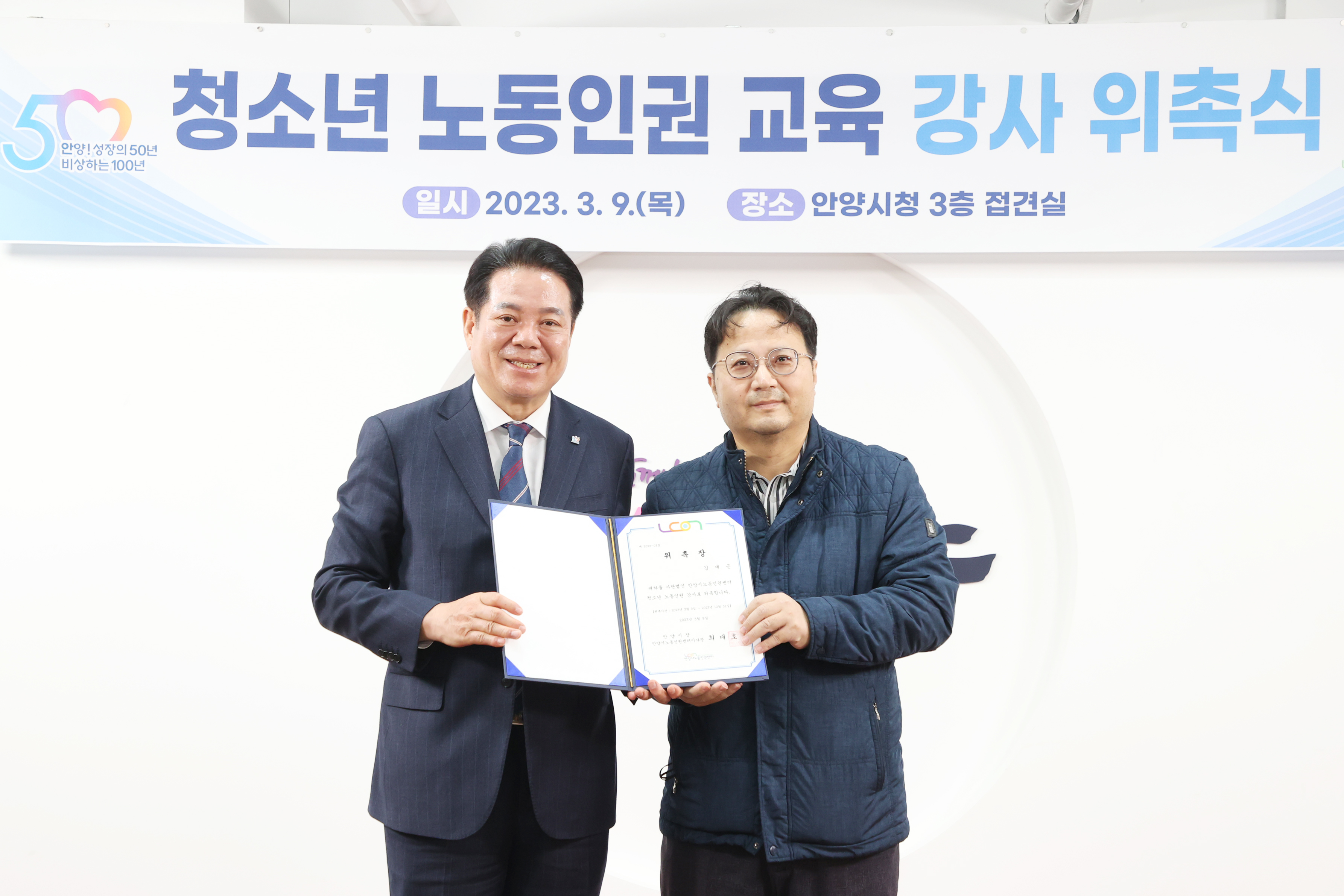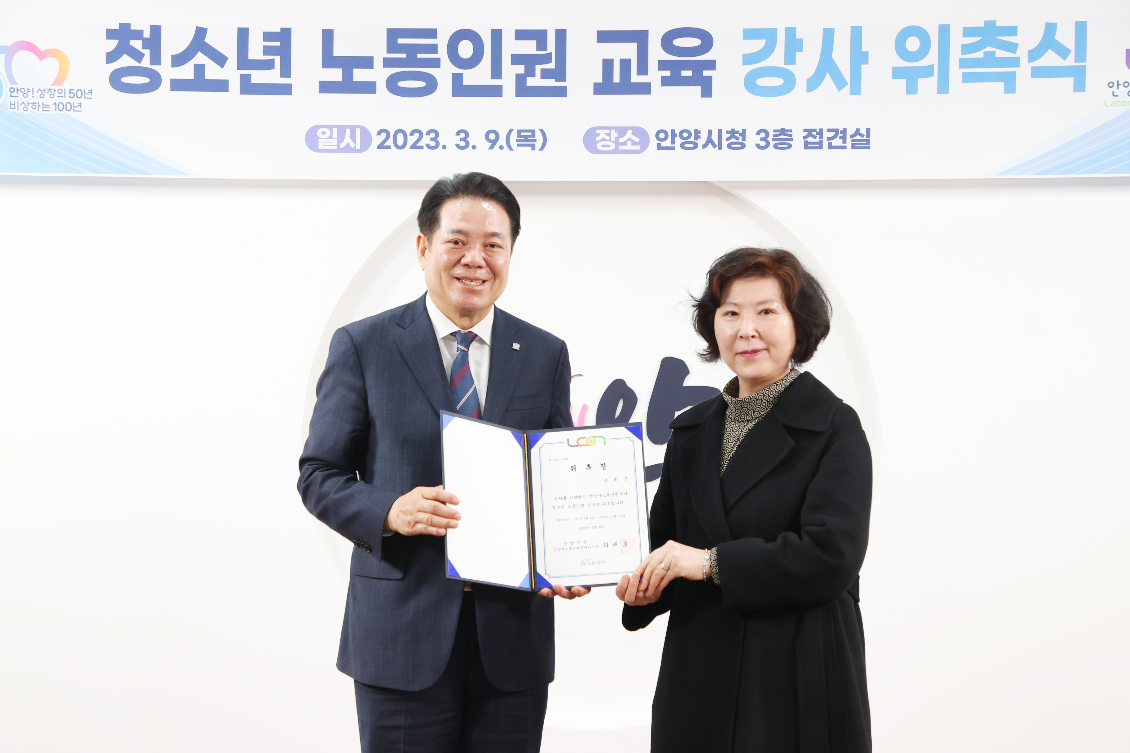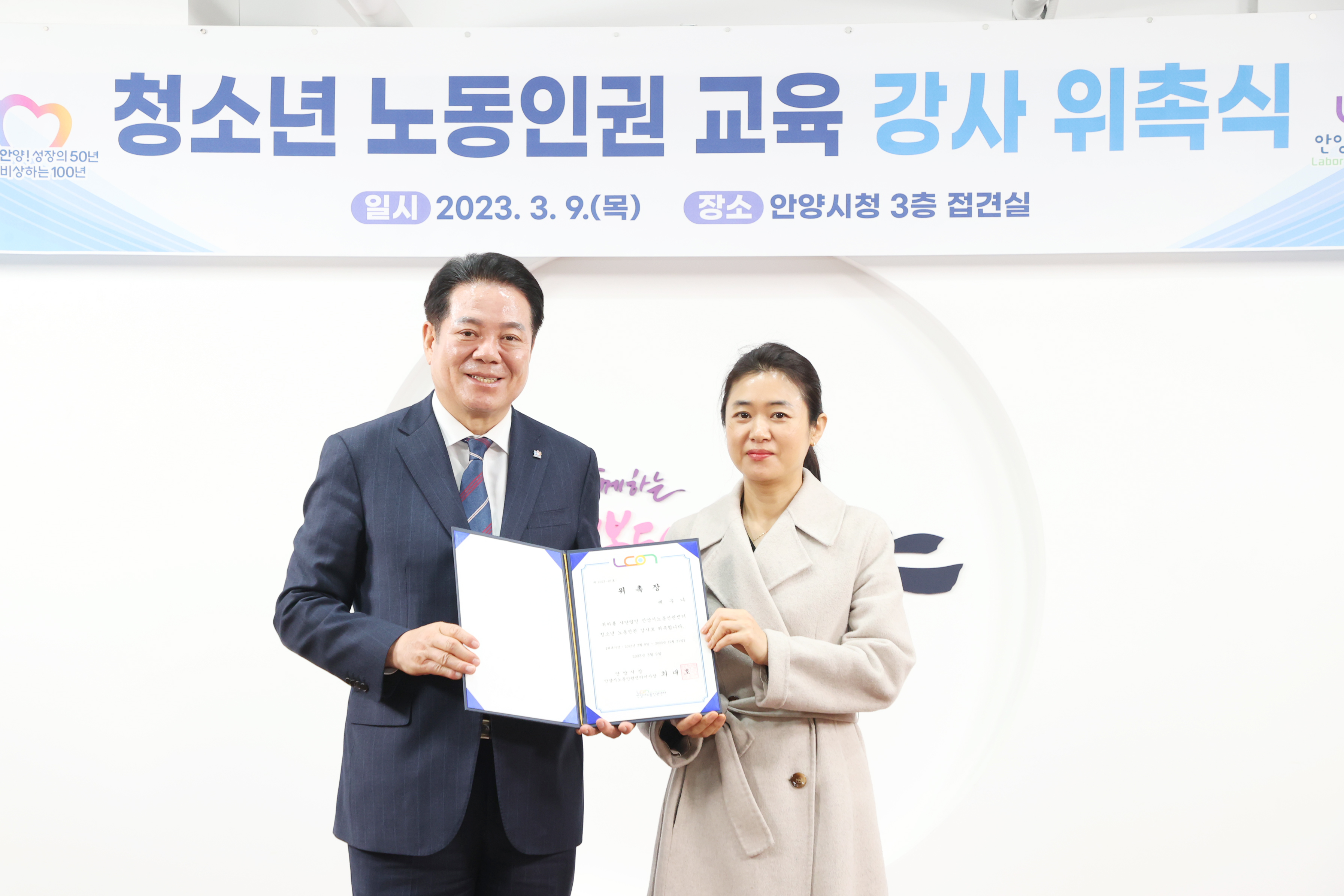 청소년 노동인권 교육 강사 위촉식 - 일시 : 2023. 03 09. 10:00 - 장소 : 시청 접견실