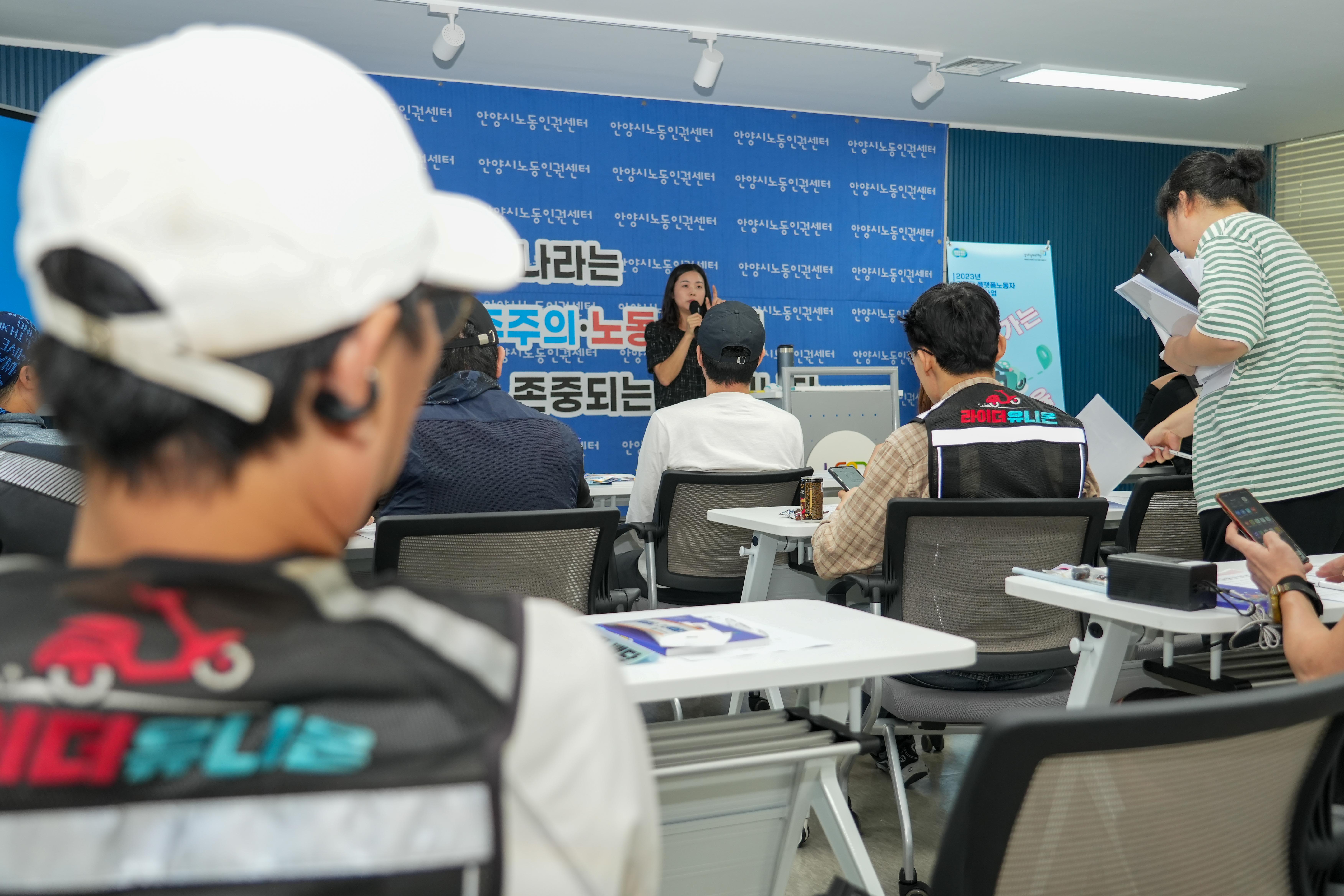 안양시 배달종사자 안전교육 - 일시 : 2023. 09. 19. - 장소 : 안양시노동인권센터 교육장
