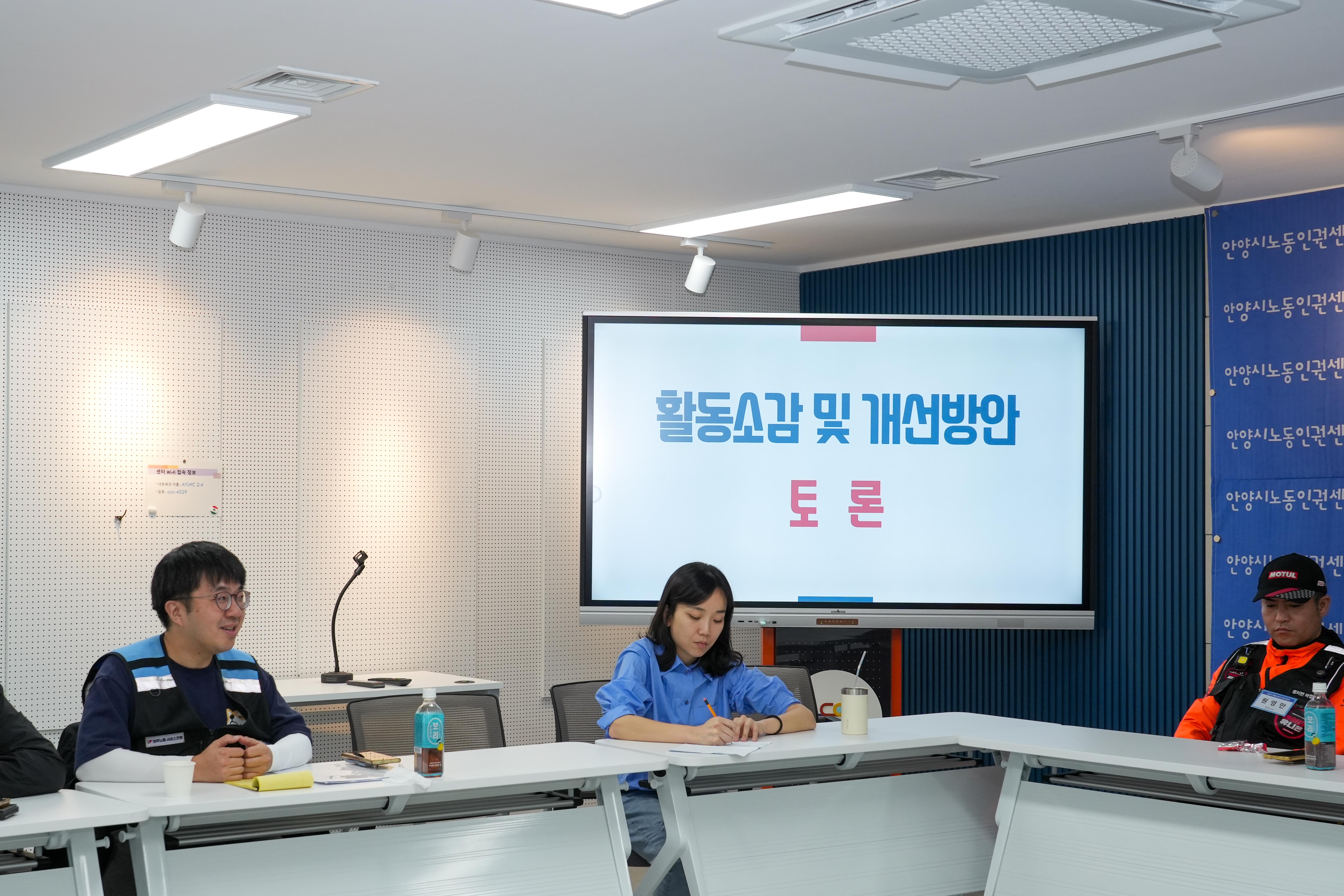 배달노동자 안전지킴이 평가회 - 일시 : 2023. 10. 12. - 장소 : 안양시노동인권센터