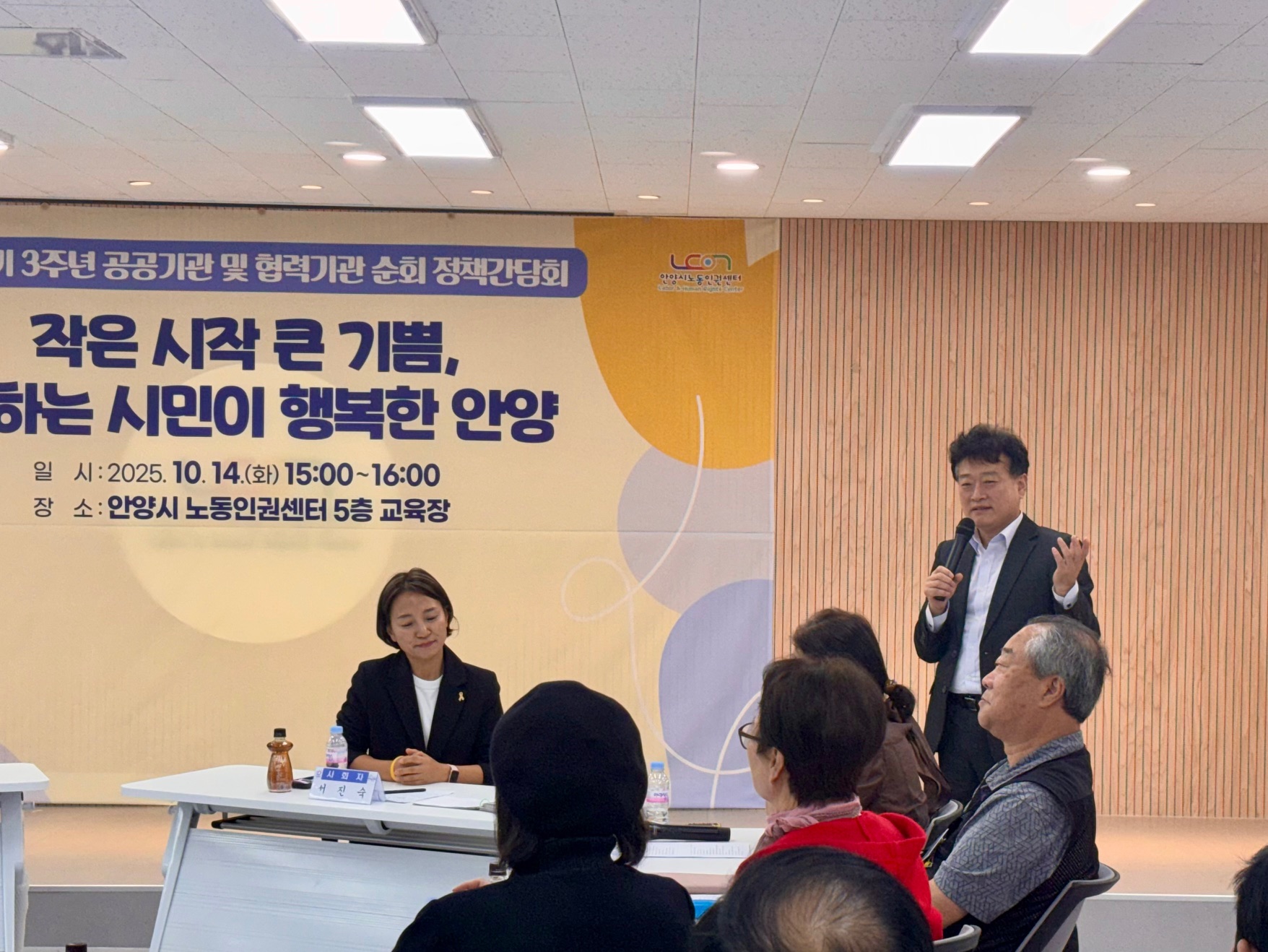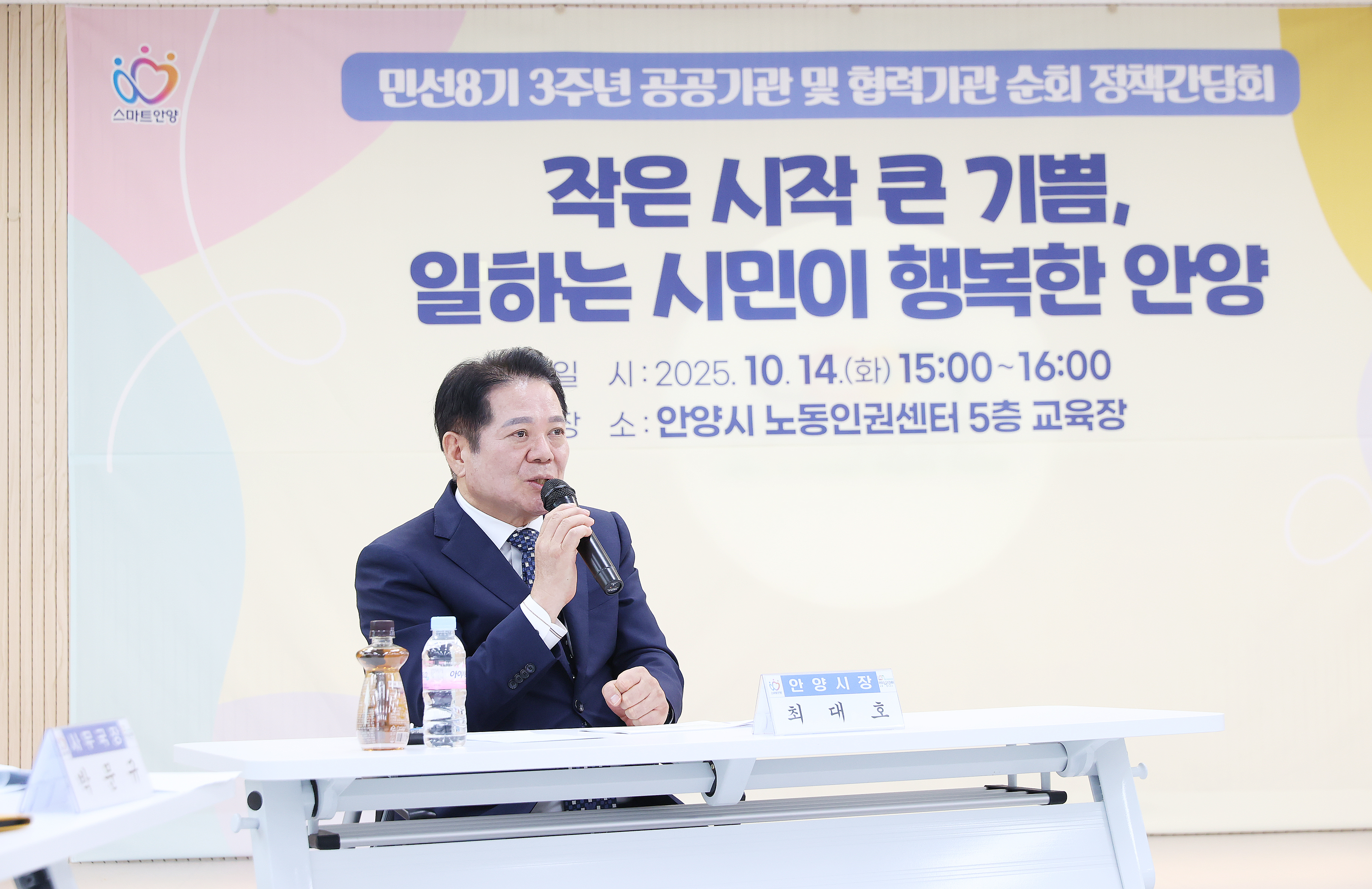 민선8기 3주년 공공기관 및 협력기관 순회 정책간담회(노동인권센터) - 일시 : 2025. 10. 14.(화) 15시 - 장소 : 안양시노동인권센터 5층 교육장